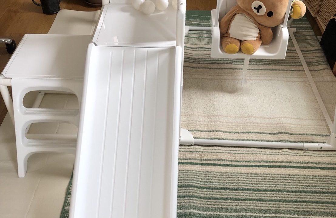すべり台だけの商品、ブランコだけの商品に比べるとどうしてもスペースはとってしまいます。お部屋のものを減らして、キレイに子供にスペースをあけてあげないといけません。がそれも断捨離と思って親ががんばりましょう。笑